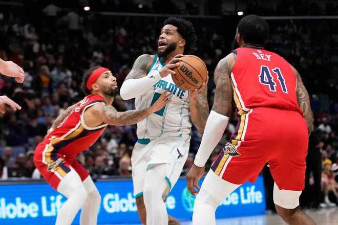 中場休息回來,黃蜂率先打出一波11-0攻勢反超9分,鵜鶘連追5分,塞克斯頓三分?jǐn)U大7分優(yōu)勢。鵜鶘多點開花反撲追到76-78僅差2分,黃蜂一波6-0攻勢重新擴大8分領(lǐng)先優(yōu)勢,鵜鶘也連得6分。雙方持續(xù)纏斗至鵜鶘87-91落后,黃蜂再得2分,鵜鶘單節(jié)26-34輸?shù)?分,三節(jié)結(jié)束鵜鶘87-93被黃蜂反超。前三節(jié)比賽,墨菲5記三分19分引領(lǐng)鵜鶘6人得分上雙,布里奇斯20+7+3引領(lǐng)黃蜂4人得分上雙,其中3人得分15+。